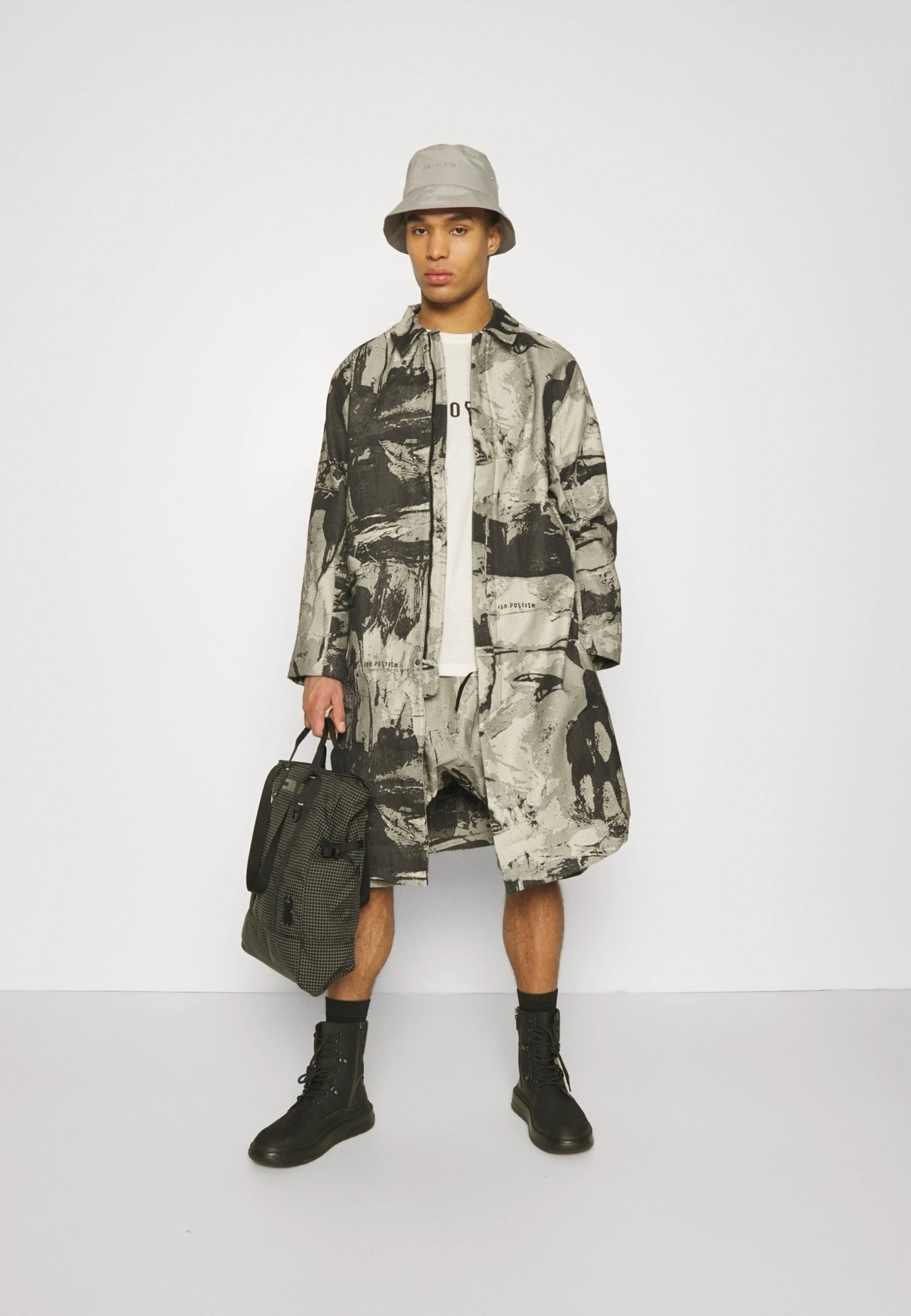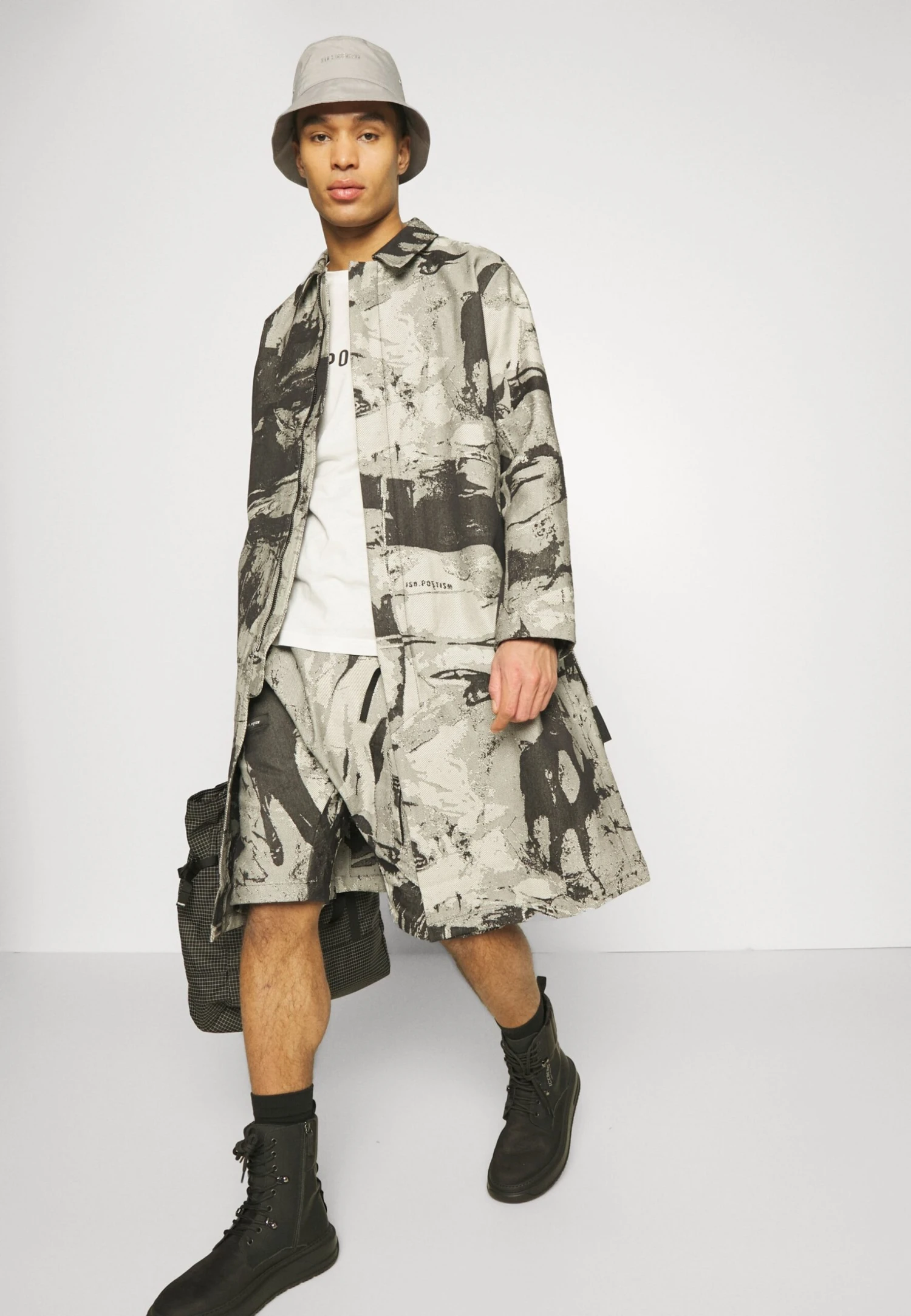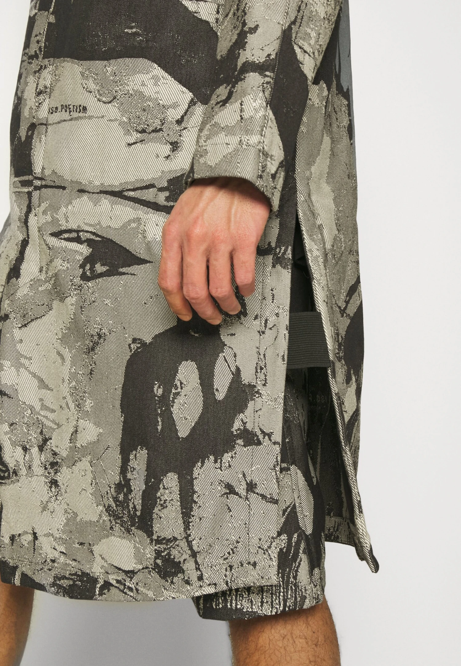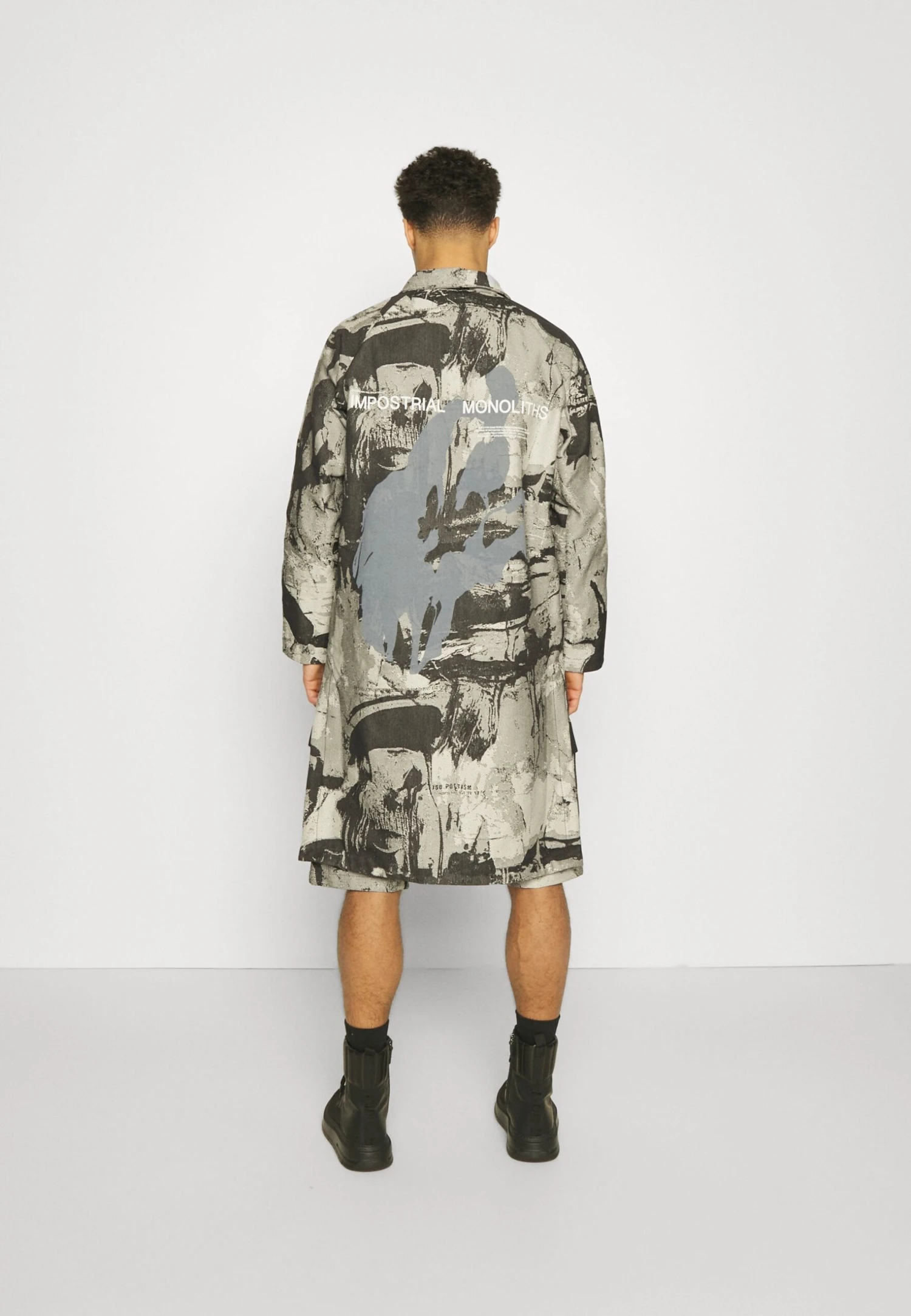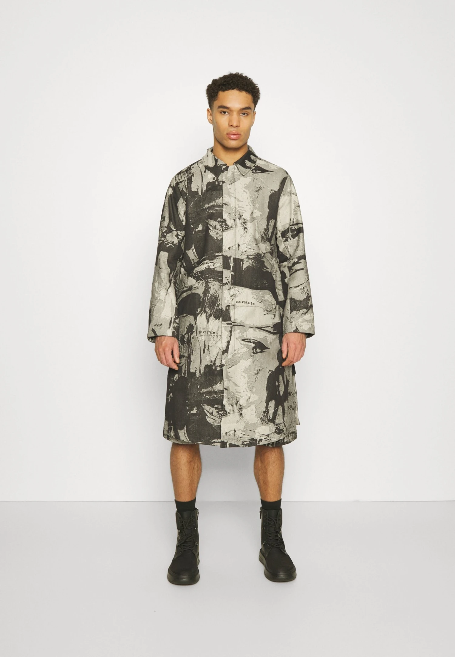 Iso.PoetismLONG SIDE VENTS PRINT – Klassisk Kappa / Rock – Black