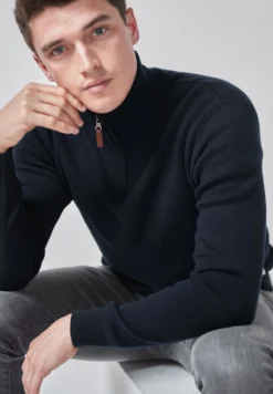 NextPREMIUM ZIP NECK – Stickad Tröja – Blue