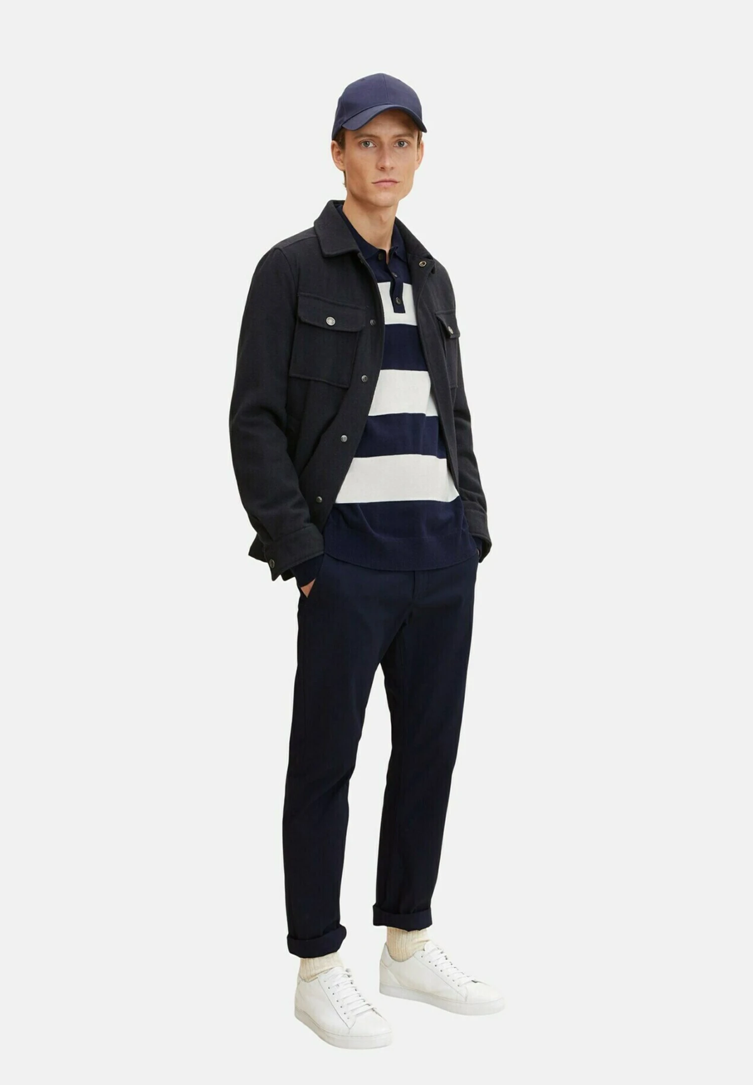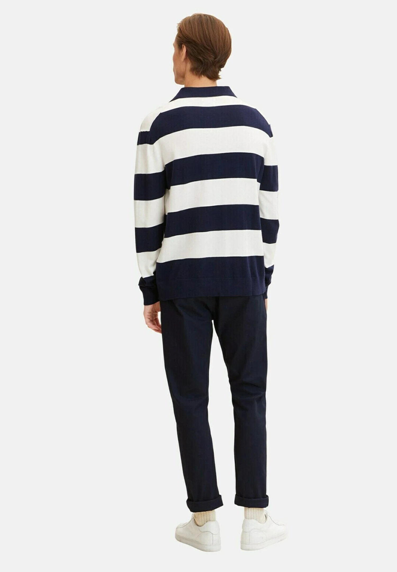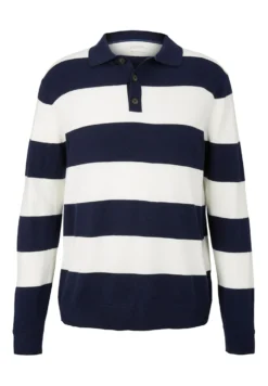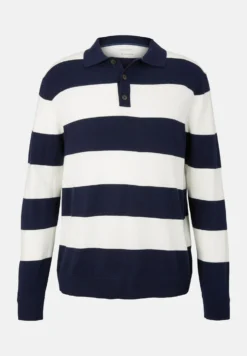 TOM TAILORStickad Tröja – Navy Off White Block Stripe